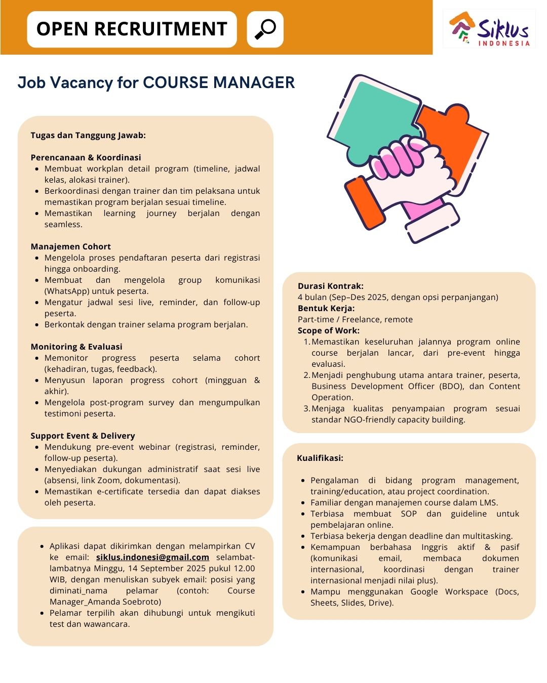 OPEN RECRUITMENT : COURSE MANAGER Tugas dan Tanggung Jawab: Perencanaan [...]